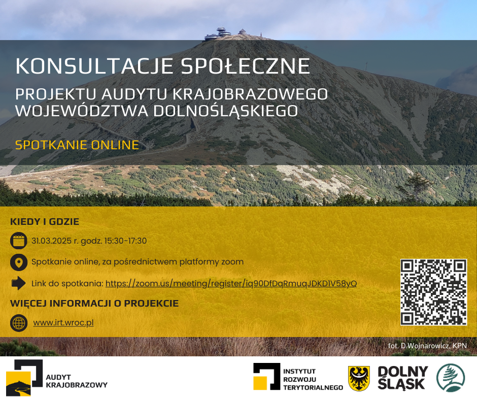 Z projektem Audytu krajobrazowego województwa dolnośląskiego można zapoznać się do dnia 17 kwietnia 2025 r.: